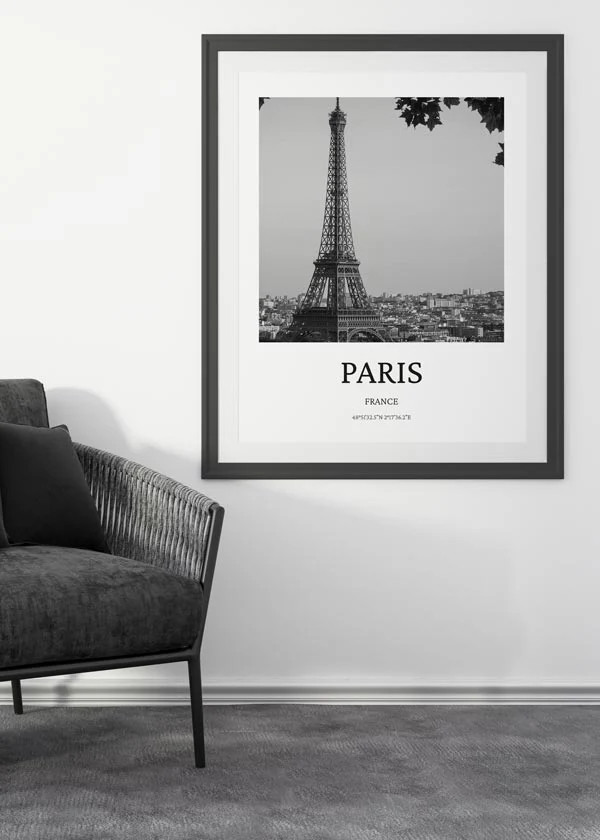 Cuadro fotográfico de la ciudad de París en blanco y negro. Si esta es tu ciudad preferida, te ha marcado hondo en algún viaje, o simplemente te encanta su cultura, ¡debe de estar en tu hogar